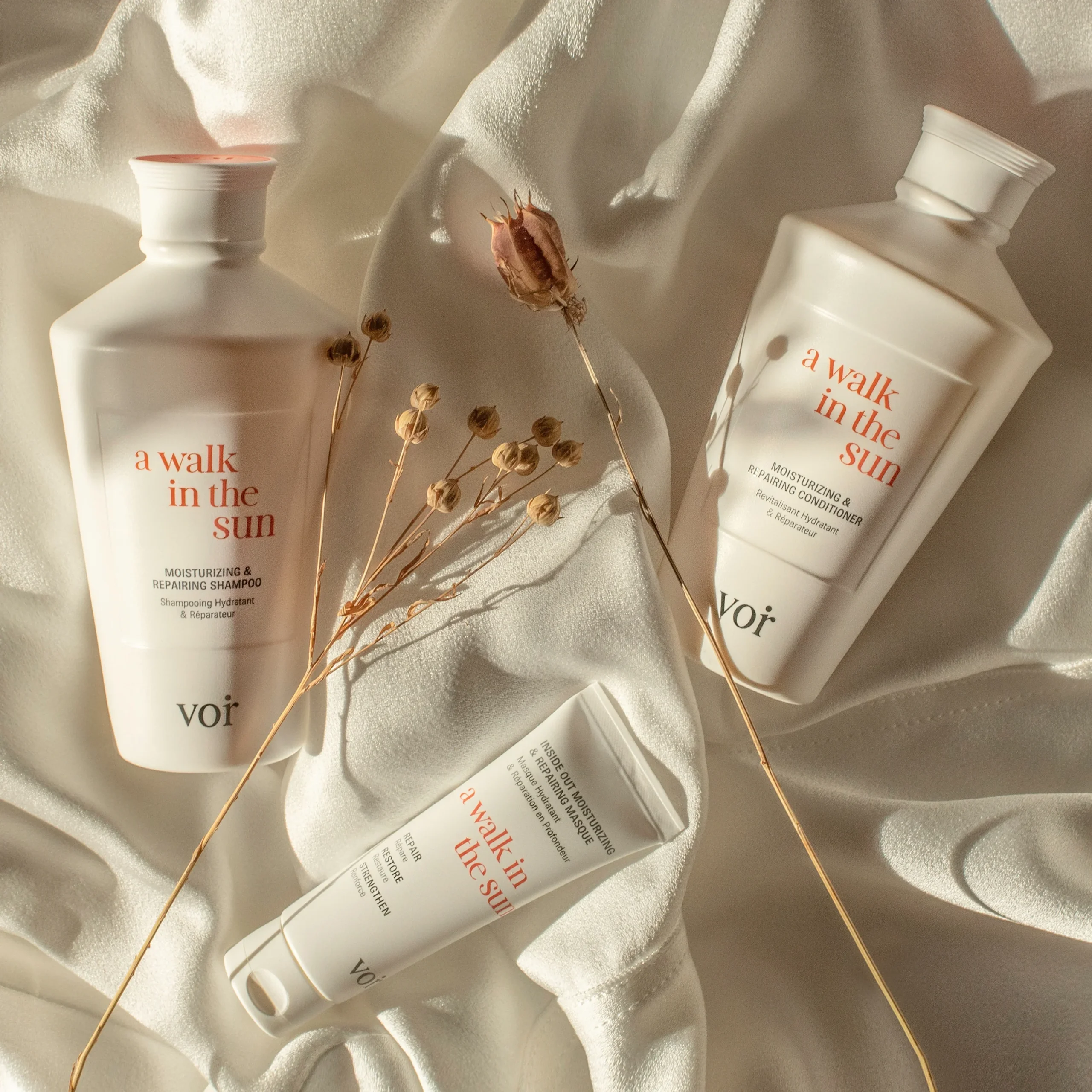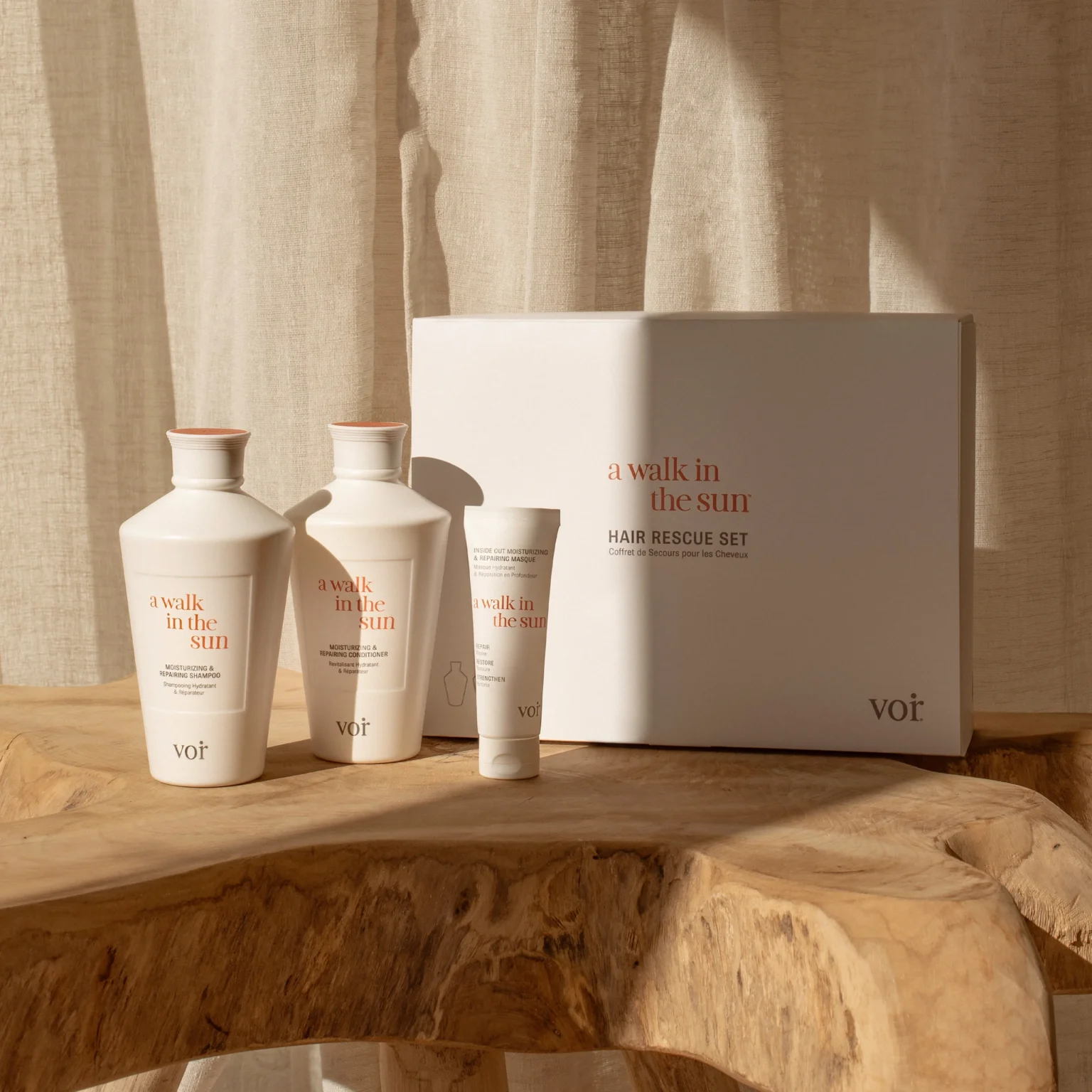 Revive dry, sun-exposed hair with the A Walk in the Sun Hair Rescue Set, formulated to hydrate, repair, and strengthen damaged hair. Discover more nourishing solutions from the Voir Hair collection, known for clean, high-performance haircare. Visit Yellow Fairies to explore premium hair care products online in the UAE and elevate your daily routine.