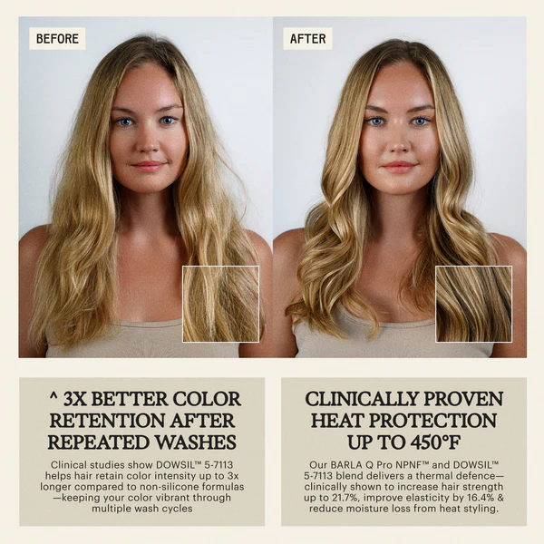 A versatile formula that protects hair from heat up to 450°F / 232°C, helps detangle and soften hair, and gives your hair color a more vibrant appearance.