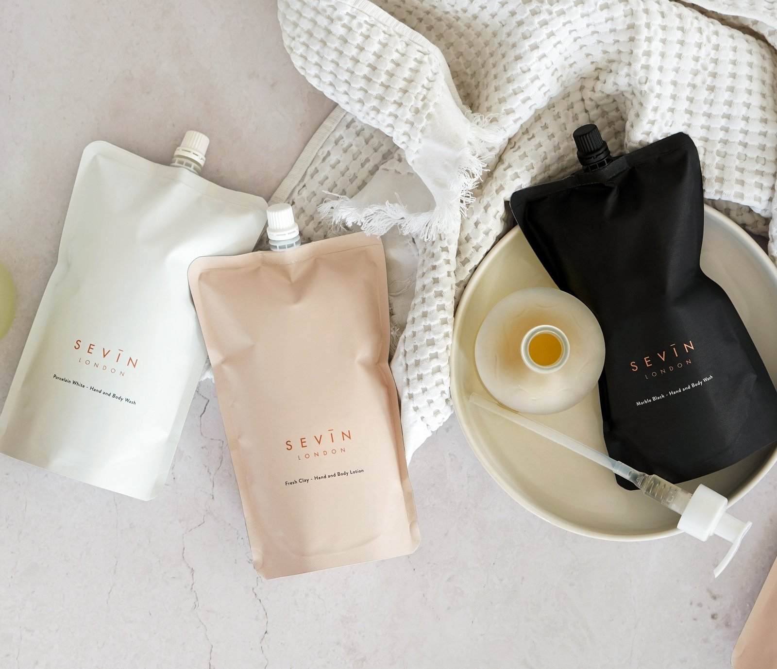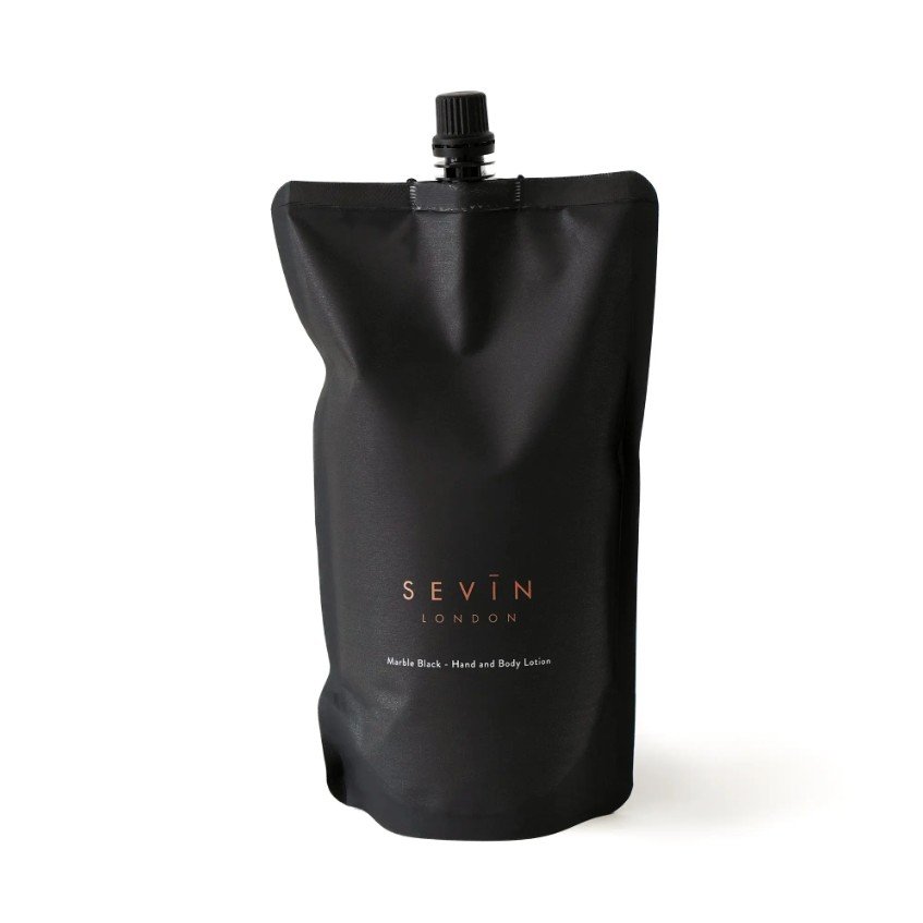 Pour the lotion into your S E V I N London bottle, apply it to your hands and body, gently massaging into clean, dry skin as often as needed to keep it soft and smooth. When finished, recycle the pouch responsibly.